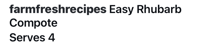 Easy Rhubarb Compote Post author:Adam Batson Post published:May 5, 2025 Post category:RECIPES Tags: rhubarb Read more articles Previous PostRhubarb Spice Muffins Next PostEasy Blueberry Rhubarb Crumble You Might Also Like Summertime Vegetable Quiche August 15, 2014 Chicken Soup on Steroids October 31, 2023 Greens “Shaksuka” March 9, 2025